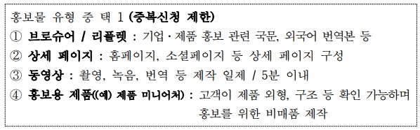 ㅇ (지원내용) 기업당 홍보물 제작 비용 지원 / 2. 지원내용 참조