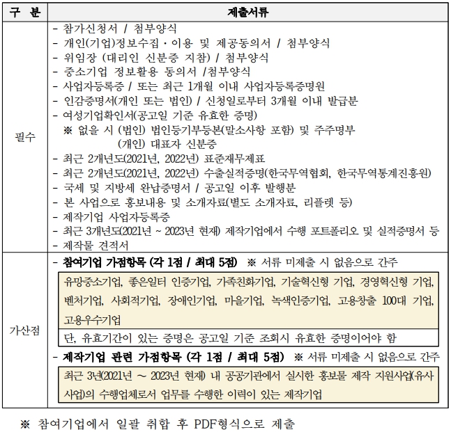 ㅇ (제출서류) 제출서류는 공고일 기준으로 함